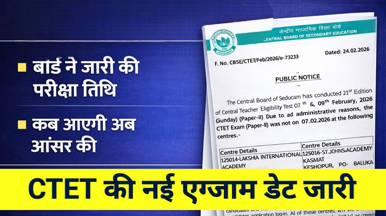 CTET Re Exam Date Notice: केंद्रीय शिक्षक पात्रता परीक्षा 2026 का आयोजन 7 और 8 फरवरी को देश भर की....