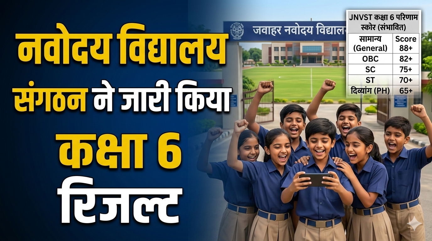 JNVST 2026 Result: जवाहर नवोदय विद्यालय चयन परीक्षा 2026 का इंतजार कर रहे लाखों छात्रों और उनके परिवारों के लिए बड़ी खबर आ गई है। कक्षा 6 में दाखिले के लिए आयोजित JNVST 2026 का लिखित परीक्षा परिणाम आज यानी 17 मार्च 2026 को आधिकारिक रूप से जारी कर दिया गया है। देशभर में हर साल लाखों छात्र इस परीक्षा में शामिल होते हैं, क्योंकि नवोदय विद्यालयों में एडमिशन मिलना एक बड़ा मौका माना जाता है — यहाँ पढ़ाई के साथ रहना, खाना, किताबें और यूनिफॉर्म सब कुछ लगभग मुफ्त में मिलता है। रिजल्ट जारी होने के बाद छात्रों और अभिभावकों में खासा उत्साह देखा जा रहा है। जिन छात्रों ने यह परीक्षा दी थी, वे अब अपना रिजल्ट ऑनलाइन देख सकते हैं।
