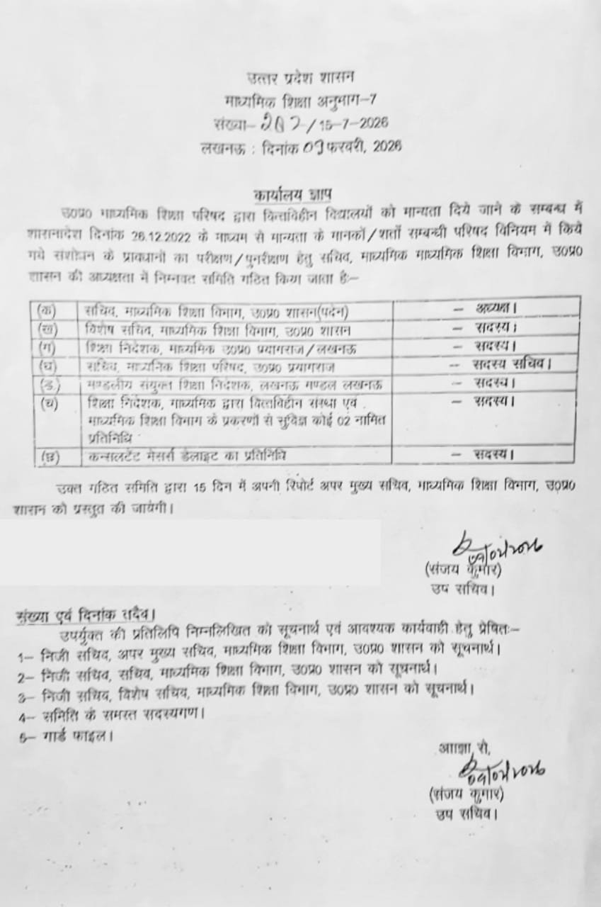 उत्तर प्रदेश में लगभग 22000 वित्तविहीन माध्यमिक विद्यालय हैं, जिनमें चार लाख से अधिक शिक्षक कार्यरत हैं। शासन ने इन शिक्षकों के लिए सचिव, माध्यमिक शिक्षा विभाग की अध्यक्षता में एक उच्च स्तरीय समिति का गठन किया है, जो वित्तविहीन माध्यमिक विद्यालयों के शिक्षकों के लिए नई सेवा नियमावली का मसौदा तैयार करेगी। 15 दिनों के भीतर समिति को अपनी रिपोर्ट देनी होगी। इसके साथ ही समिति वित्तविहीन विद्यालयों की मान्यता से संबंधित नियमावली में भी संशोधन का प्रस्ताव प्रस्तुत करेगी। लंबे समय बाद इन शिक्षकों को राहत की उम्मीद जगी है। काफी कम मानदेय में यह शिक्षक शिक्षण कार्य कर रहे हैं। अब नई नियमावली लागू होने के बाद न्यूनतम मानदेय मिलने की राह आसान हो जाएगी।